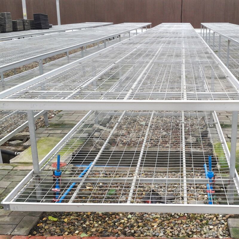 The rolling bench is an essential growing system designed for commercial greenhouses and nursery centers. Engineered with an aluminum frame and heavy-duty galvanized mesh surface, this bench combines lightweight construction with exceptional durability. The innovative side-to-side rolling mechanism dramatically improves space utilization and planting density.